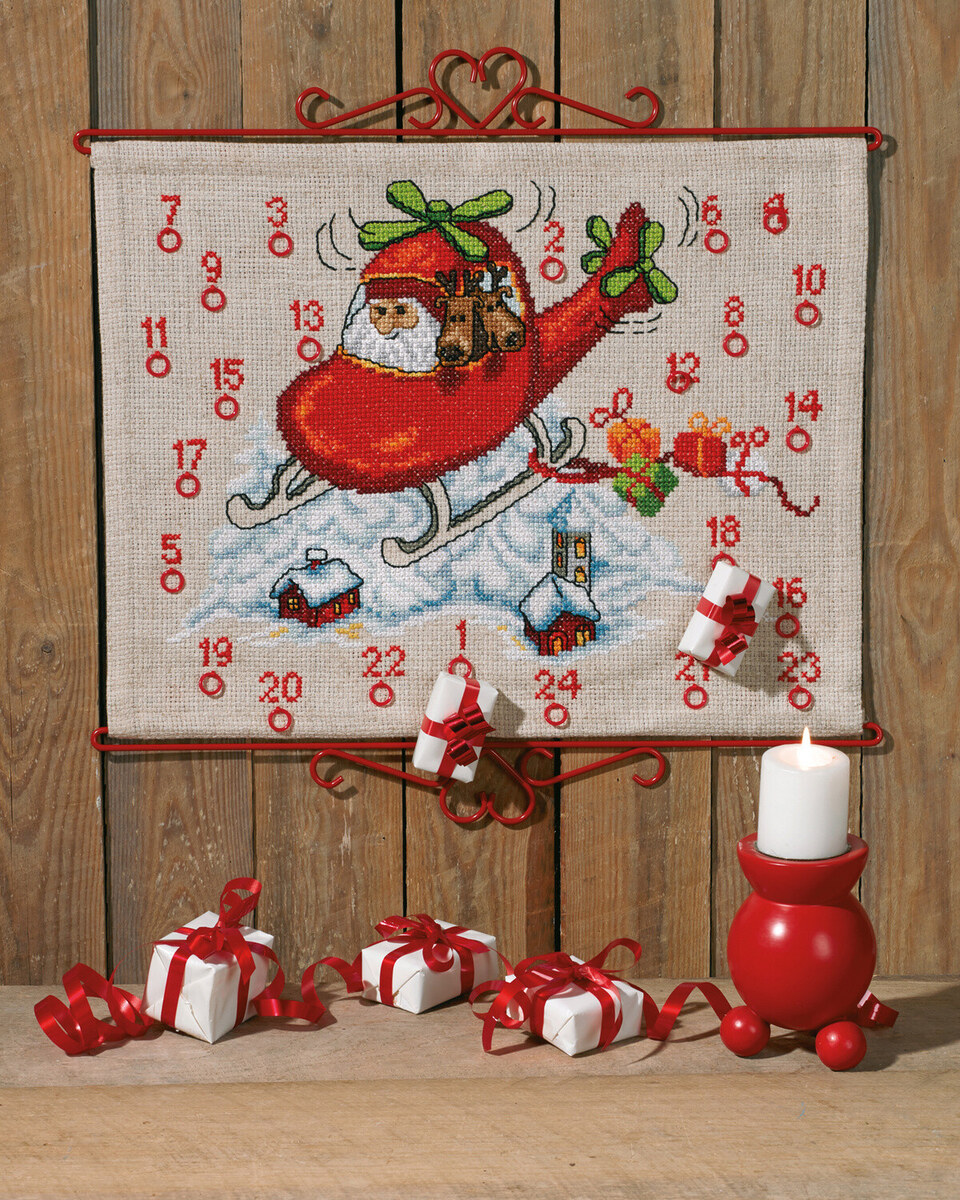 - Borduurpakket met kerstmannen in luchtvaartuig