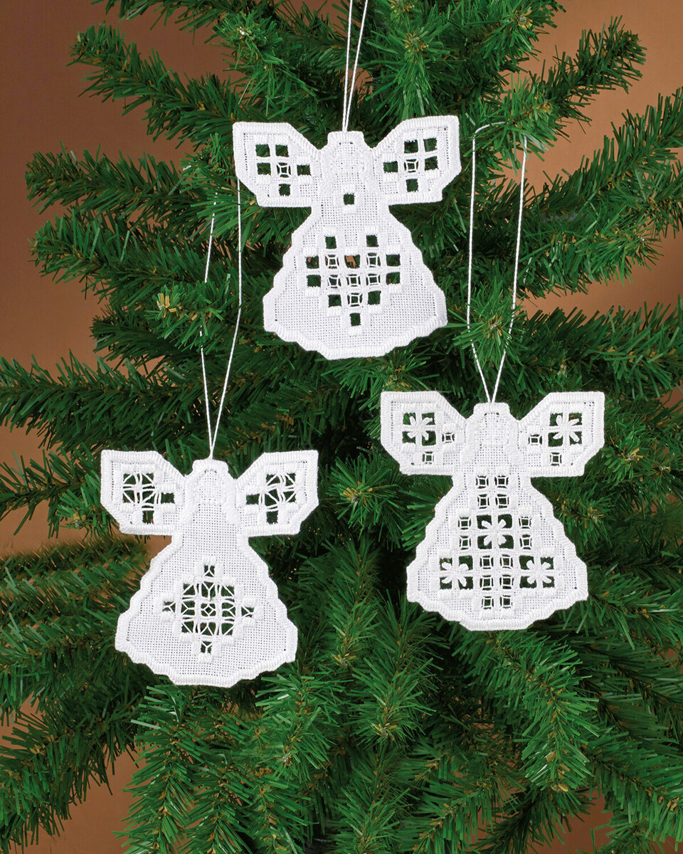 Borduurpakket Hardanger engelen 3 stuks 10 x 10 cm