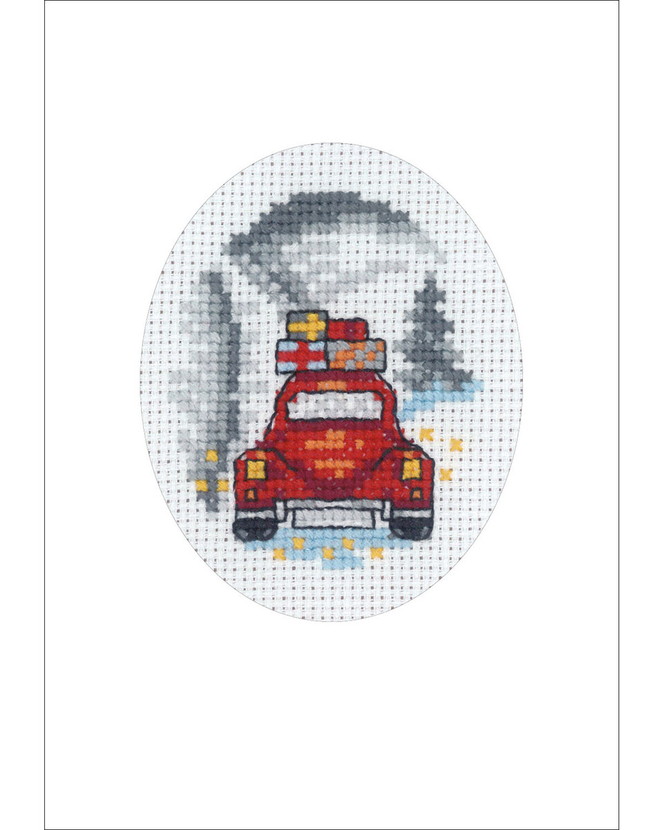 Borduurpakket Rode auto kerstkaart 9 x 13 cm