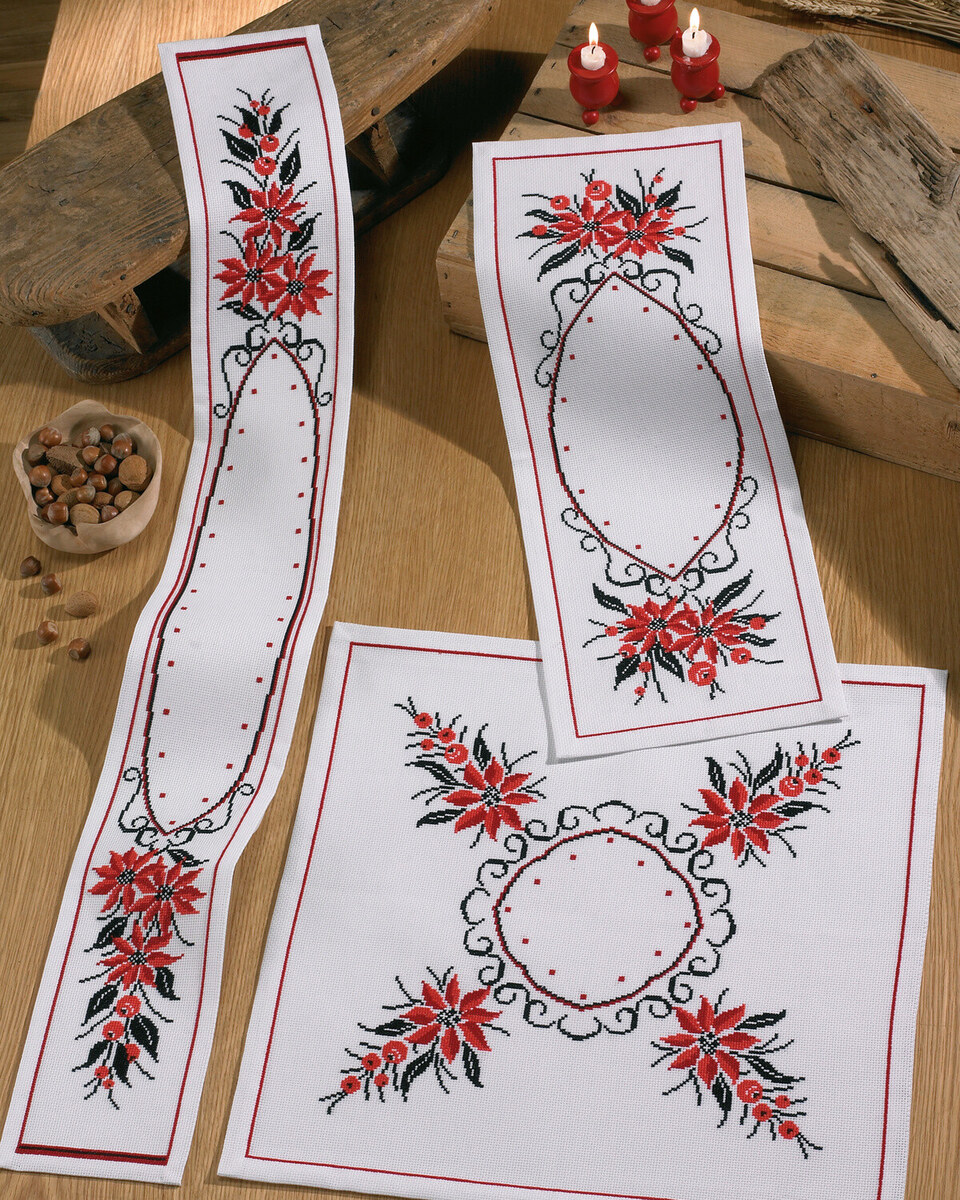 Borduurpakket Rode kerststerren 26 x 67 cm