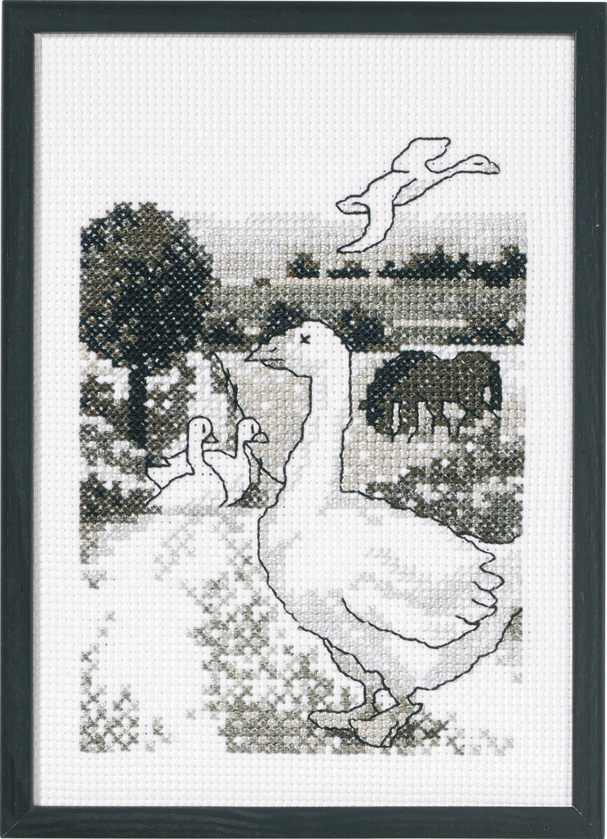 Borduurpakket Ganzen in het veld 20 x 29 cm