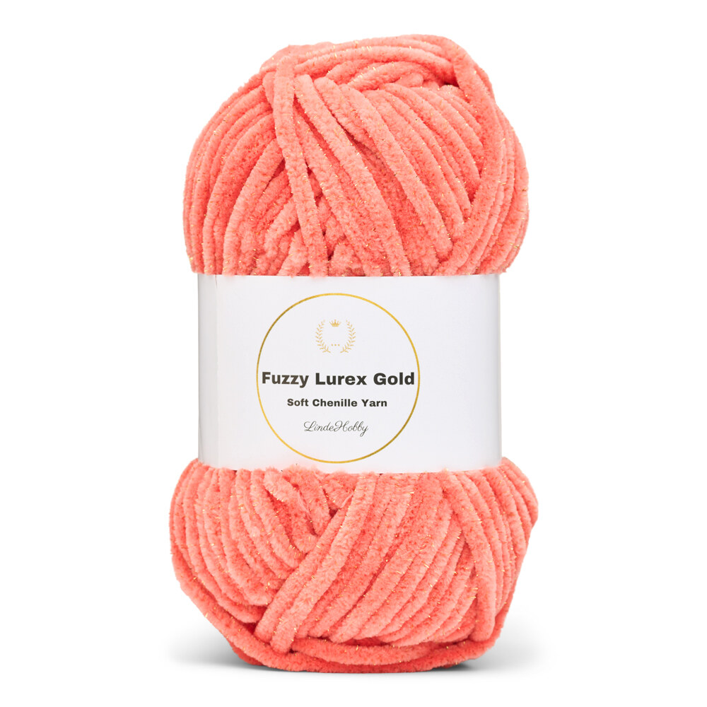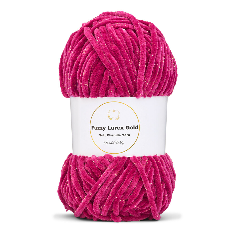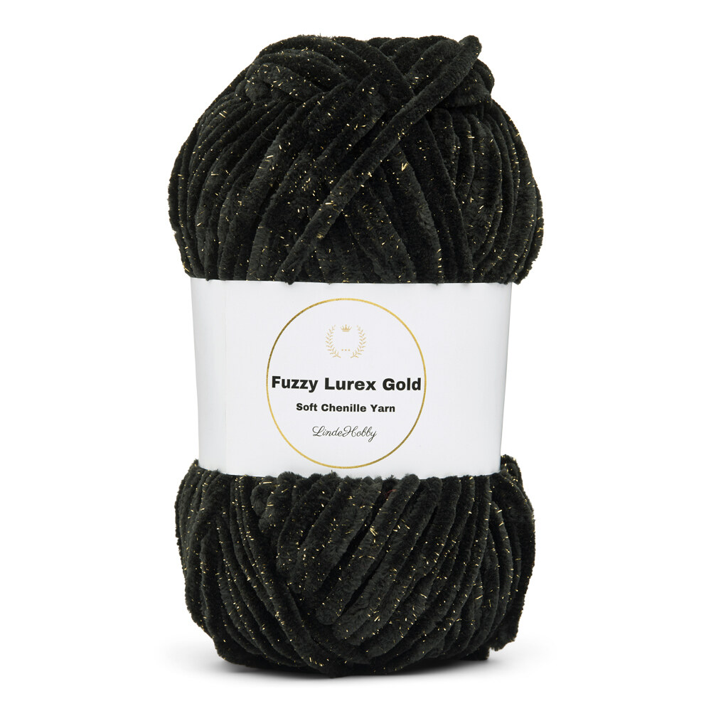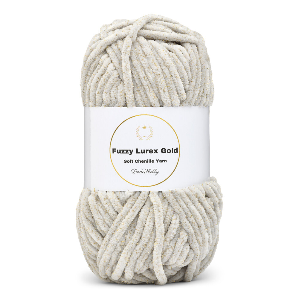 Fuzzy Chenille Gold Lurex van LindeHobby is een ongelooflijk zacht en decoratief chenillegaren met ingeweven gouden glitter. Het garen bestaat uit polyester en lurex en heeft een volle, pluizige textuur die een luxueuze uitstraling aan je projecten geeft. Geschikt voor zowel breien als haken en verkrijgbaar in meerdere kleuren met dezelfde glanzende afwerking.