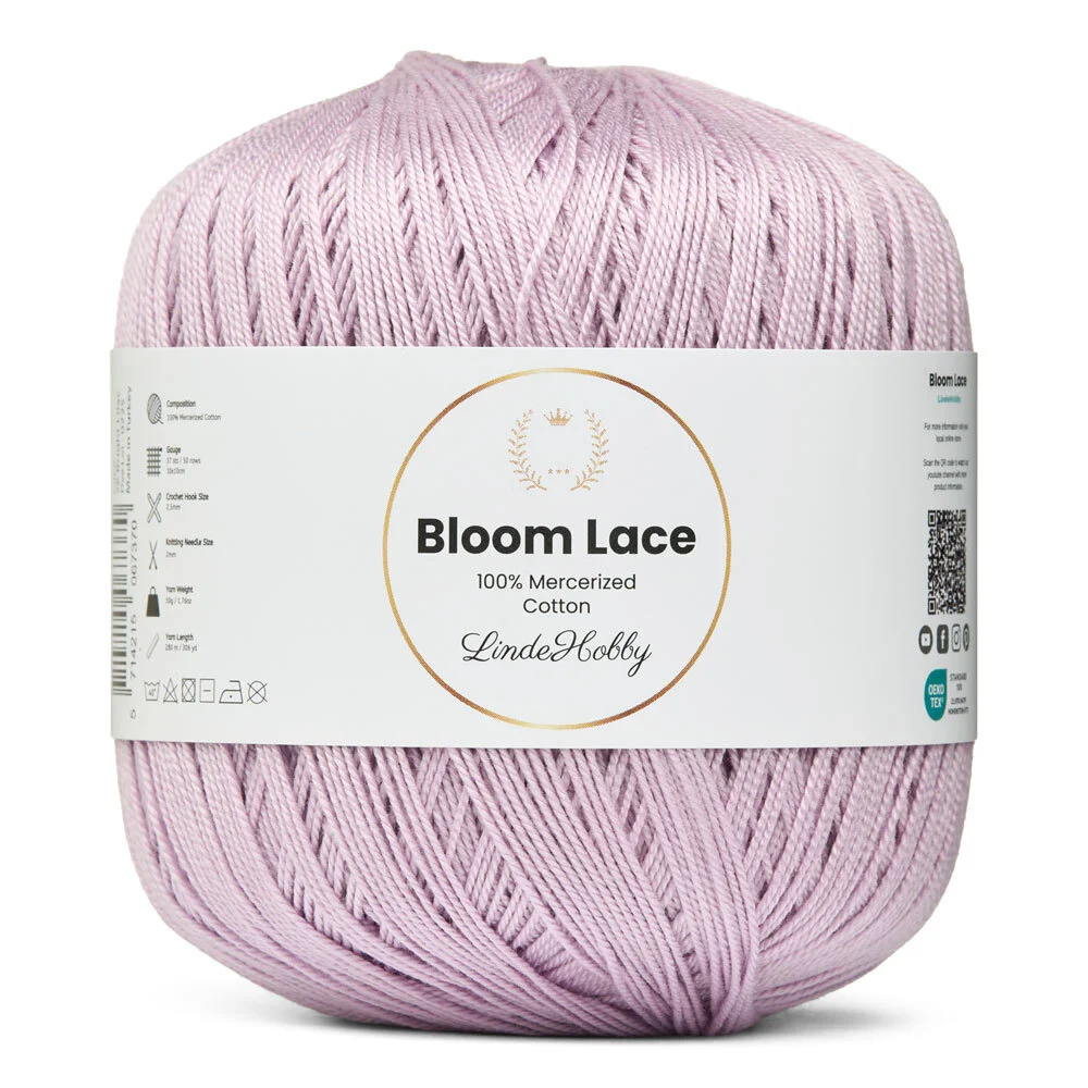 LindeHobby Bloom Lace is een luxe lacegaren van 100% gemerceriseerd katoen. Het garen heeft een prachtige, glanzende afwerking en een dichte, gladde structuur die een exclusieve uitstraling aan het eindresultaat geeft. Het fijne en delicate garen is perfect voor projecten waarbij precisie en een elegante afwerking centraal staan.
