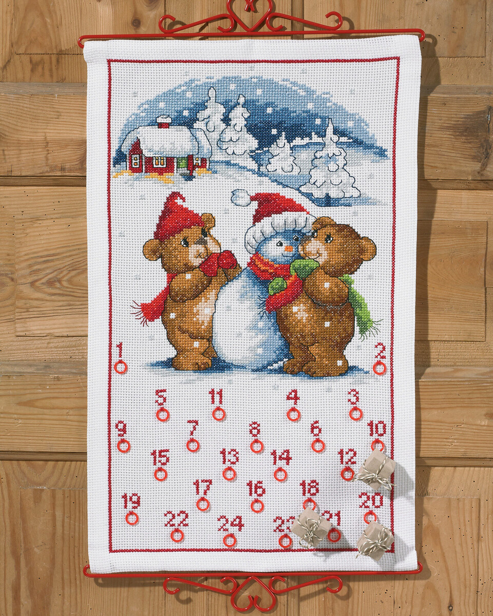 Deze charmante borduurset, "Beren en sneeuwman 5125/38", brengt de magie van de winter en kinderlijke vreugde direct in je huis. Met een dromerige verzameling van blije beren en een vriendelijke sneeuwman in een besneeuwd landschap, zal het eindresultaat zeker een gezellige en feestelijke sfeer toevoegen aan elke kamer.