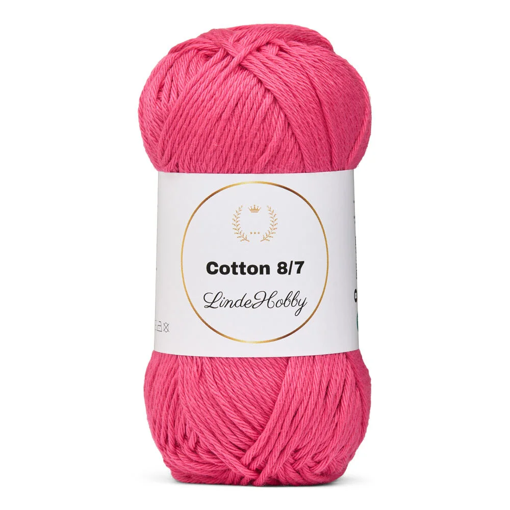 LindeHobby Cotton 8/7 is een klassiek garen van 100% katoen met een looplengte van ca 90 meter per 50 g. Het garen heeft een stevige en gelijkmatige draadstructuur, waardoor het prettig en eenvoudig is om mee te werken – of je nu breit of haakt. Het is een populaire keuze bij zowel beginners als gevorderden en is verkrijgbaar in een breed scala aan prachtige kleuren.