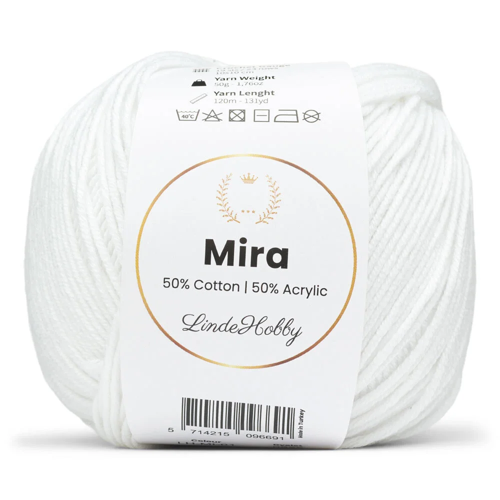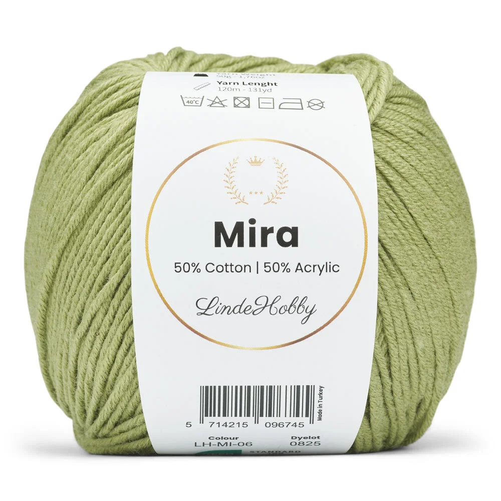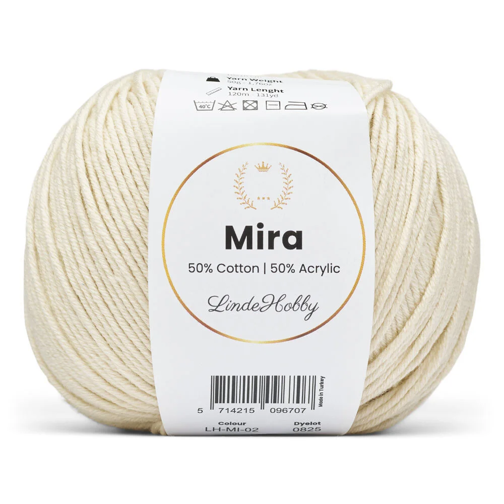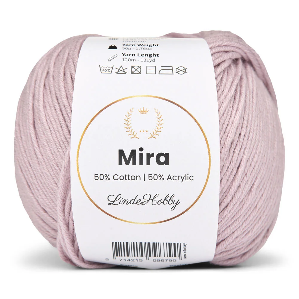 LindeHobby Mira is een effen kwaliteitsgaren in een zorgvuldig uitgebalanceerde mix van 50% katoen en 50% acryl. Deze combinatie zorgt voor een licht, zacht en slijtvast resultaat dat comfortabel aanvoelt op de huid. Het garen behoudt zijn zachtheid was na was en heeft een structuur die zorgt voor een mooi en gelijkmatig stekenbeeld.