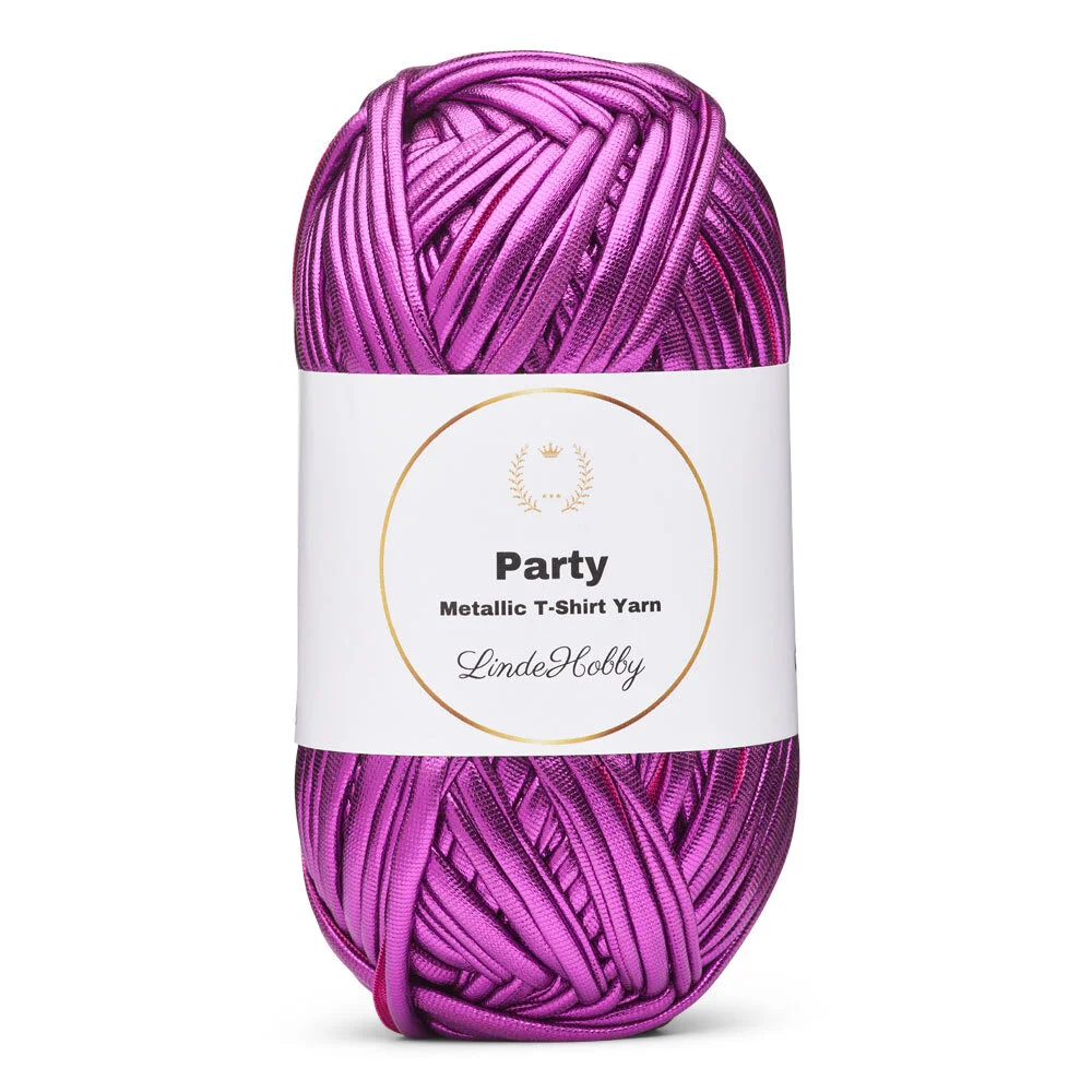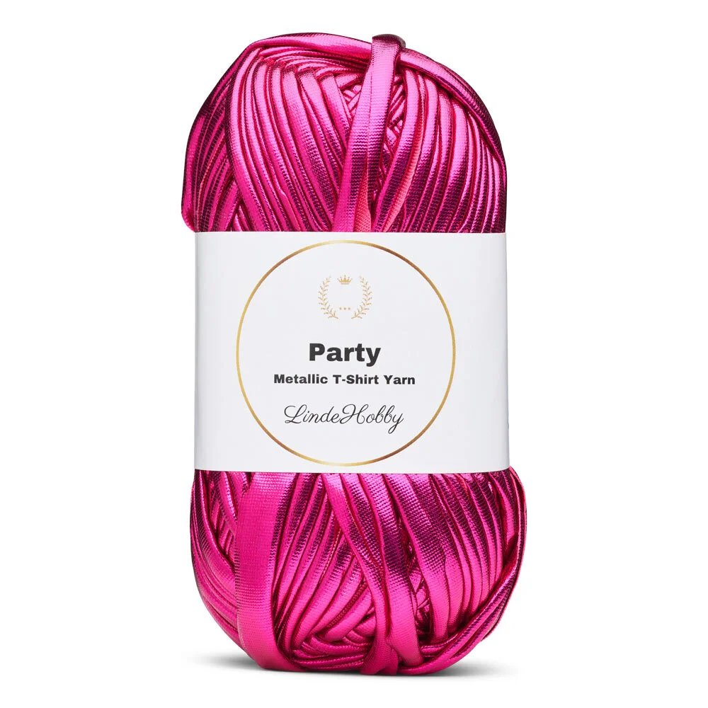 LindeHobby Party is een opvallend en decoratief T-shirtgaren met een mooie glanzende afwerking. Het garen heeft een metallic effect aan één zijde, waardoor uw projecten een exclusieve en feestelijke uitstraling krijgen. Het glanzende oppervlak vangt het licht mooi op en creëert reflecties, waardoor het garen perfect is voor projecten waarbij de details moeten opvallen. Of u nu kleine accessoires, tassen of creatieve manden maakt, LindeHobby Party voegt glans en leven toe aan uw ontwerpen.