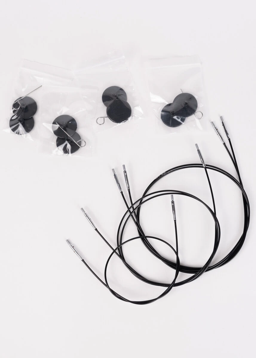 Bevat: 8 naaldpunten in maten 3.50, 4.00, 4.50, 5.00, 5.50, 6.00, 7.00 en 8.00 mm, evenals 4 kabels 60, 80 (2 stuks) en 100 cm met kabelsleutels, stoppers en gebruiksaanwijzing.