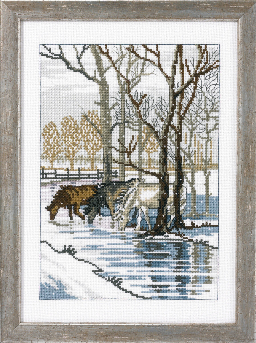 Borduurkit 3 paarden bij de beek 35 x 25 cm R5797