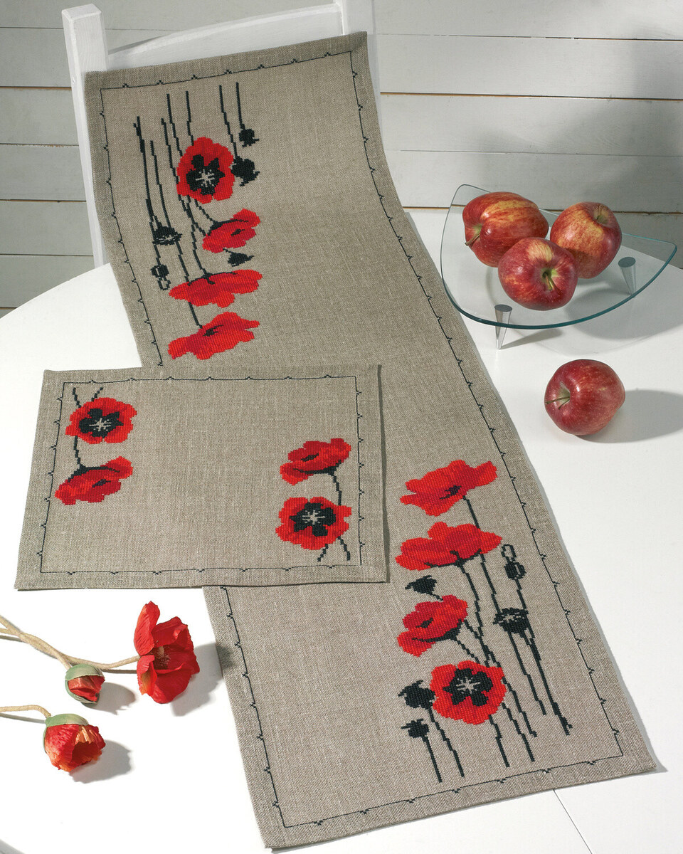 Borduurpakketitel: Klaproos op natuur 36 x 117 cm
